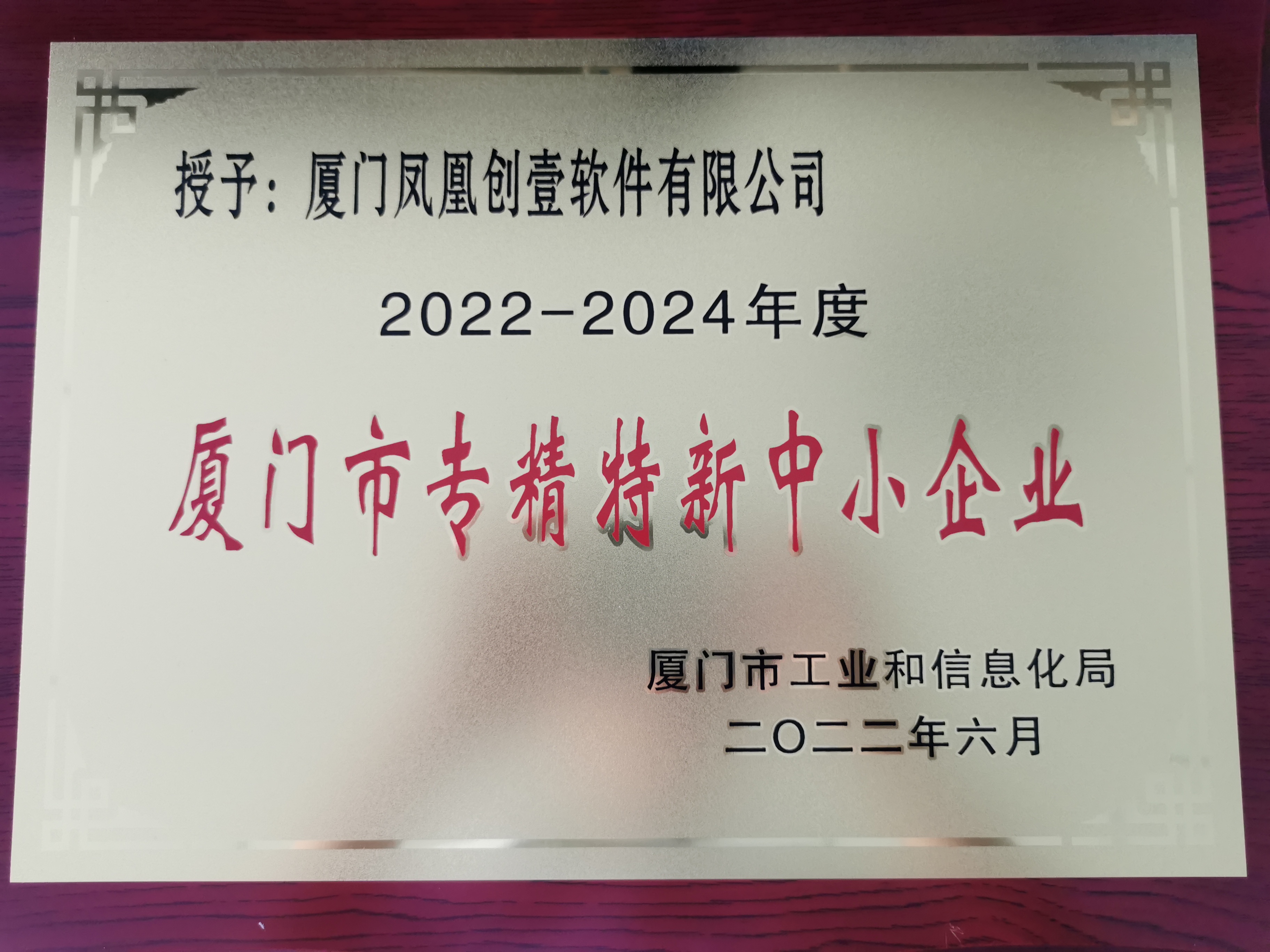 新榮譽!鳳凰創(chuàng)壹2022年廈門市“專精特新”中小企業(yè)獎牌到了