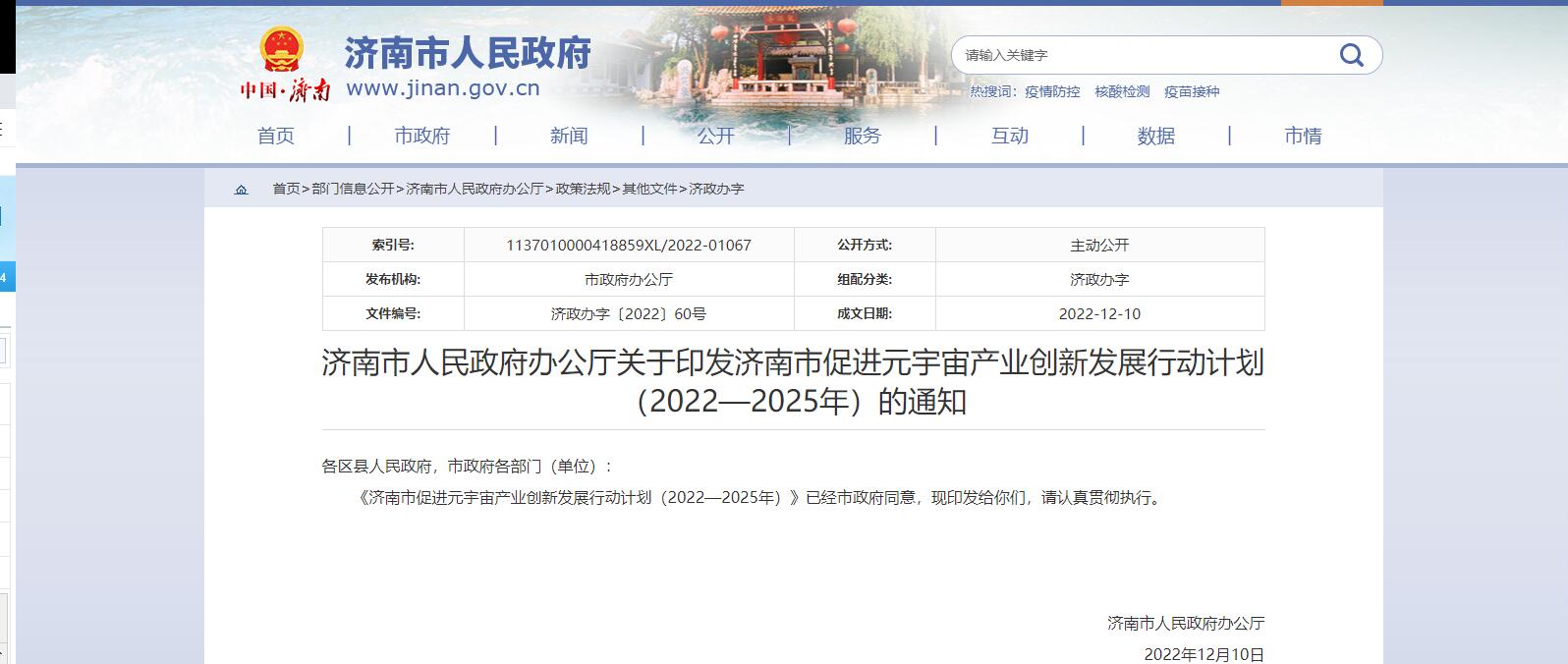 濟南市政府12月10日發(fā)布《濟南市促進(jìn)元宇宙產(chǎn)業(yè)創(chuàng)新發(fā)展行動計劃(2022—2025年)》。山東省濟南市政府12月10日發(fā)布《濟南市促進(jìn)元宇宙產(chǎn)業(yè)創(chuàng)新發(fā)展行動計劃(2022—2025年)》(以下簡稱《......