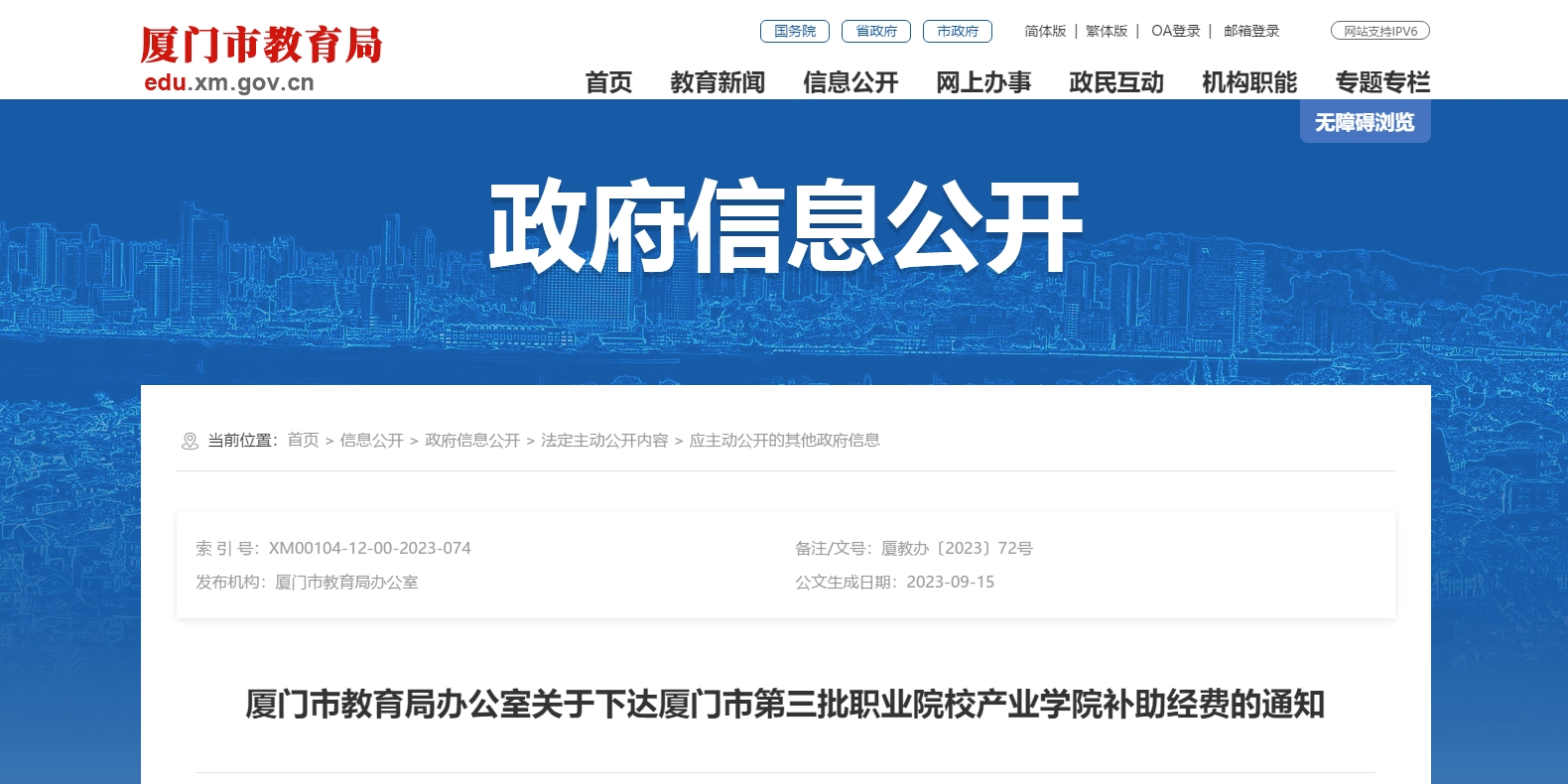 廈門市教育局發(fā)布下達廈門市第三批職業(yè)院校產(chǎn)業(yè)學(xué)院補助經(jīng)費通知